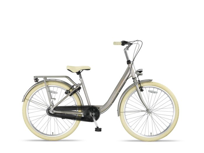 De Altec Tuana is een charmante en betrouwbare meisjesfiets, perfect voor jonge fietsers die graag comfortabel en stijlvol onderweg zijn. Met een stevig stalen frame, 3 Shimano versnellingen en een terugtraprem biedt deze fiets eenvoudige bediening en veilige ritten. De gouden kleur geeft de fiets een vrolijke en opvallende uitstraling, ideaal voor elke jonge avonturier.