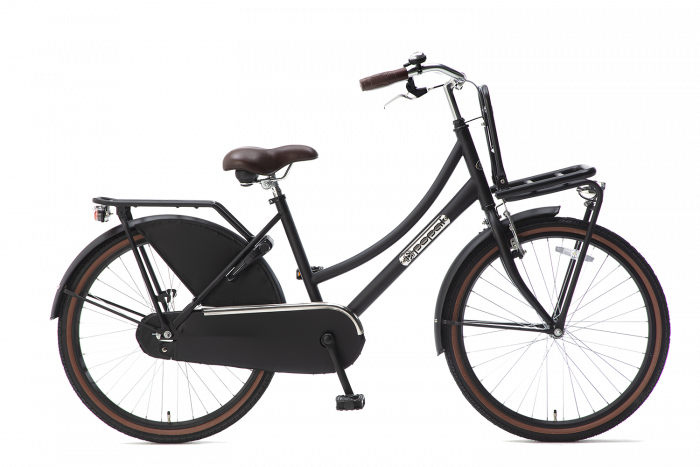 Popal Daily Dutch Basic Meisjesfiets 24 inch - Mat Zwart is een authentieke transportfiets en geschikt voor meisjes in de leeftijd van 8 tot 12 jaar. Dat er meerdere jaren op gefietst kan worden, heeft te maken met de mogelijkheid dat u het zadel en het stuur kunt verstellen in hoogte. Op deze wijze neemt u dochter met het zadel en het stuur in te juiste hoogte automatisch de ideale zithouding aan op deze Mat Zwarte Popal Daily Dutch Basic 24 inch. Het is een fiets die veel comfort biedt met een royaal zadel en soepel trapsysteem. Het is tijdens het fietsen mogelijk om snel te remmen door de handrem of de terugtraprem in werking te stellen. De Popal Daily Dutch 24 inch heeft een voordrager en het is leuk en extra praktisch om daar een fietskrat of een fietsmand op te monteren. Dat maakt het gemakkelijk om een tas te vervoeren. Dat kan overigens ook op de bagagedrager aan de achterzijde van deze meisjesfiets. De LED verlichting maakt het mogelijk om veilig te fietsen als het donker of wat schemerig is. Ieder wiel is daarbij nog eens voorzien van een transparante reflector. Op het moment dat de Popal Daily Dutch Basic 24 inch - Mat Zwart ergens wordt neergezet met de zijstandaard, is het aan te raden om het ringslot te gebruiken.