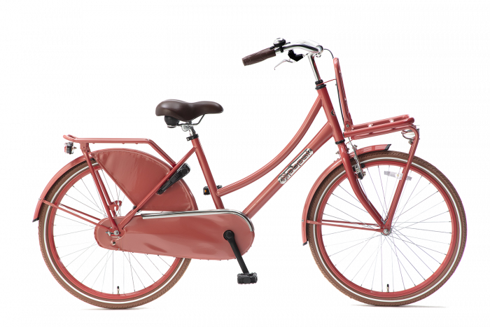 De Popal Daily Dutch Basic 24 inch Meisjesfiets in Flamingo uitvoering is een opvallende fiets om te zien. De Flamingo kleur is zowel gedurfd, als elegant. Werkelijk tijdloos. Het frame van de Popal Daily Dutch Basic is prachtig afgewerkt. Met glimmend Popal logo op het frame en de metalen afwerking op de kettingkast, kun je met de Daily Dutch voor de dag komen. De Popal Daily Dutch is een mooie én praktische fiets. Zo beschermt de gesloten kettingkast de ketting tegen slijtage. Zo kan deze mooie transportfiets jaren mee. De Popal Daily Dutch wordt ook wel een transportfiets genoemd, vanwege de solide bagagedrager en het praktische voorrek. Alle bagage kan zonder moeite meegenomen worden.