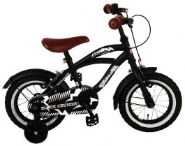 Volare Black Cruiser 18 inch jongensfiets 95% afgemonteerd is een fantastische fiets voor jongens vanaf 5 jaar. Deze fiets heeft een uniek en origineel design met een geweldige uitstraling. De fiets is bovendien stevig en kan tegen een stootje met het metalen frame en enkelwandige aluminium velgen. De lengte van uw zoon kunt u als uitgangspunt nemen om het zadel en het stuur in de juiste hoogte vast te zetten. De voor 95% afgemonteerde Volare Black Cruiser 18 inch jongensfiets beschikt over twee praktische remsystemen, want er is zowel een handrem aan het stuur beschikbaar als een terugtraprem. Het zadel heeft een royaal ontwerp en is bruin van kleur met eronder aan het frame bevestigd een reflector. Er is ook aan de voorzijde sprake van reflectorverlichting. Verder is er in beide wielen van deze Volare Black Cruiser 18 inch jongensfiets een reflector in een oranje kleur aangebracht. De banden zijn breed en met een grof profiel uitgevoerd. Bovendien is er op de banden een brede witte streep aangebracht. De gesloten kettingkast heeft een prachtige print die ook weer op het frame is te zien. De zijstandaard van de Volare Black Cruiser 18 inch jongensfiets 95% afgemonteerd biedt de gelegenheid om deze fiets overal te plaatsen.
