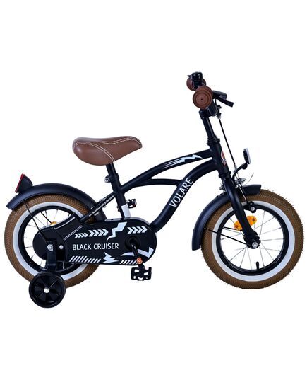 Yipeeh Black Cruiser 12 inch kinderfiets. De Yipeeh Black Cruiser is in mat zwart. In Amerika fietsen de stoere jongens langs de "Beach". Dit wil natuurlijk elke stoere jongen, ook al is hij nog maar 3 jaar. Met stevige zijwieltjes om snel te kunnen leren fietsen. Topper!